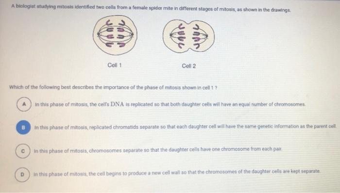 Solved A Biologist Studying Mitous Identified Two Cells From Chegg Com